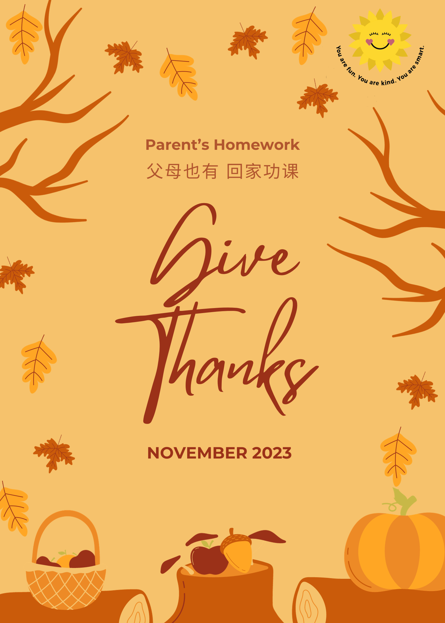 October has flown by and the season to give thanks is fast approaching. Sunshine School is continually thankful for our dedicated staff, our supportive parents, and our hardworking students!